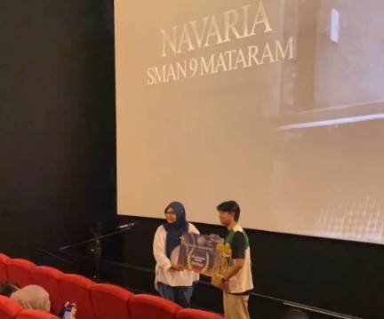 FOTO: Navaria Organaizer saat menerima penghargaan video perpisahan sekolah terbaik FFS 2025 SMAN 9 Mataram, Minggu (14/12/2025). NTBTerkini.id, Mataram- SMAN 9 Mataram kembali mengukir prestasi membanggakan di penghujung tahun 2025. Sekolah tersebut berhasil menyabet penghargaan Selaparang Awards kategori “Video Perpisahan Sekolah Terbaik” dalam ajang bergengsi Festival Film Sangkareang (FFS) 2025. Penghargaan ini diberikan oleh Direktur...