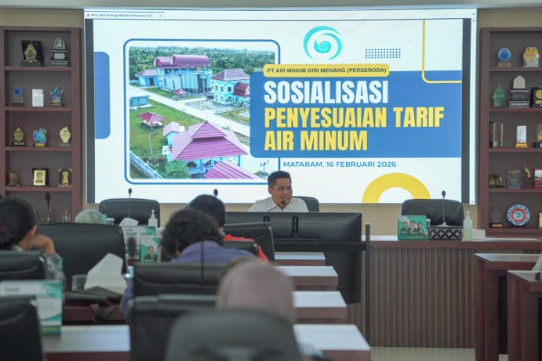FOTO: Sosialisasi penyesuaian tarif air PTAM Giri Menang, Senin (16/02). NTBTerkini.id, ​Mataram– Perusahaan Perseroda Daerah Air Minum (PTAM) Giri Menang resmi mengumumkan penyesuaian tarif air minum yang akan berlaku mulai April 2026 atau pada tagihan rekening Triwulan II. Kebijakan ini diambil guna menjaga keberlanjutan operasional dan meningkatkan kualitas layanan kepada pelanggan di wilayah Kota Mataram...