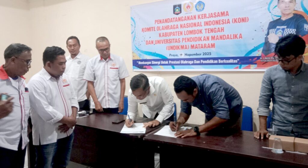 NTBTerkini.id, Loteng-Komite Olahraga Nasional Indonesia (KONI) Lombok Tengah (Loteng) resmi menjalin kerja sama dengan Universitas Pendidikan Mandalika (Undikma) Mataram. Hal ini ditandai dengan Penandatanganan kerja sama, Rabu (19/11/2025).